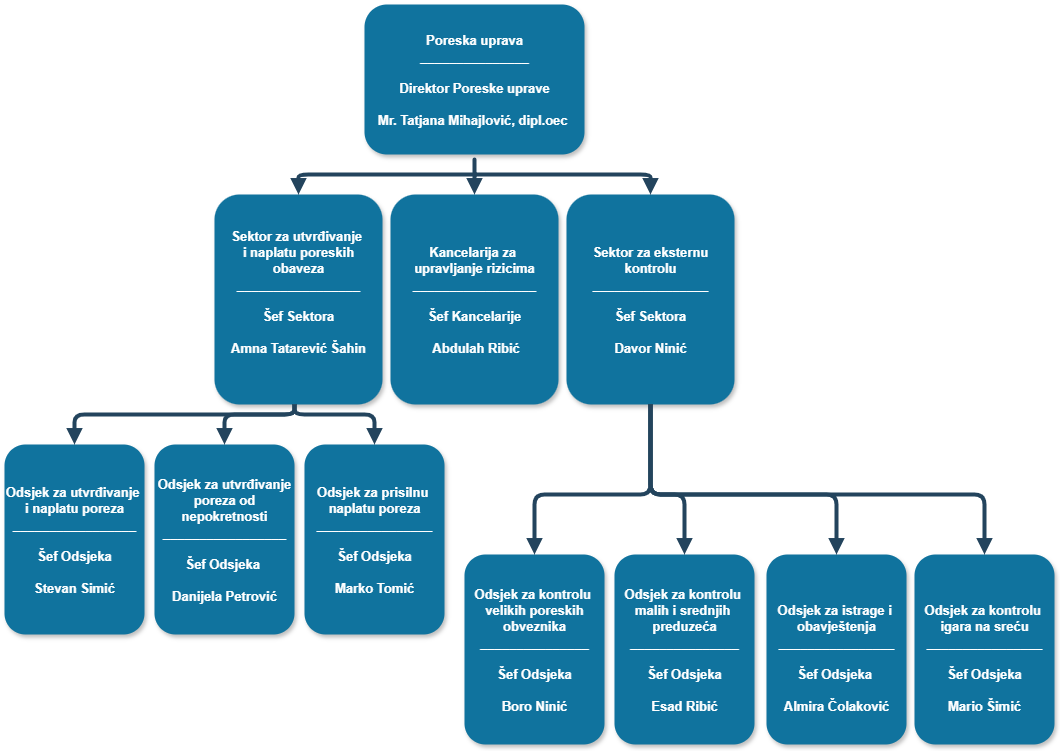 - provodi Zakon o Poreskoj upravi Brčko Distrikta BiH, te obavlja i druge poslove utvrđene programima i planovima rada.